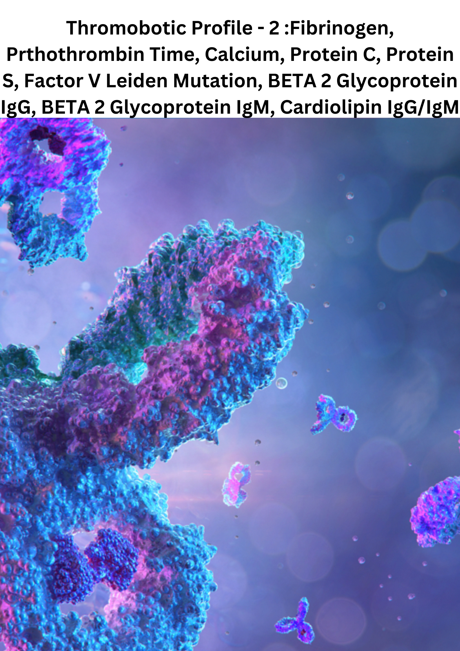 Previous Product Next Product Thromobotic Profile – 2 :Fibrinogen, Prthothrombin Time, Calcium, Protein C, Protein S, Factor V Leiden Mutation, BETA 2 Glycoprotein IgG, BETA 2 Glycoprotein IgM, Cardiolipin IgG/IgM ₹15,500.00 Thromobotic Profile - 2 :Fibrinogen, Prthothrombin Time, Calcium, Protein C, Protein S, Factor V Leiden Mutation, BETA 2 Glycoprotein IgG, BETA 2 Glycoprotein IgM, Cardiolipin IgG/IgM quantity Add to cart Category: Package Related products Quick View Quick View PackageAllergy Profile – Food (Non-Vegetarian only) ₹4,000.00 Add to cart Quick View Quick View PackageAcute Encephalitis Syndrome Panel by PCR 14 RNA Viruses+5DNA Viruses+4Bacteria+1Parasite +1Fungi CSF ₹27,500.00 Add to cart Quick View Quick View PackageAna Blot Profile :dsDNA,Nucleosome,Histon,SmD1(Anti Smith Antibodies),PCNA(Proliferating Cell Nuclear Antigen)Rib- PO,SS-/Ro60kD,SS-A/Ro52kD,SS-B/La,CENP- B(AntiCetromeric Antibodies),Scl-70,U1-snRNP,AMA- M2,Jo 1,PM-SCL,Mi-2,Ku ₹4,000.00 Add to cart